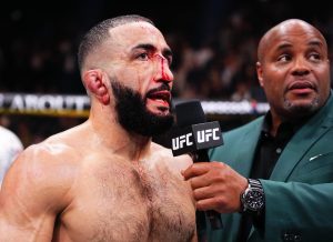 MANCHESTER, ENGLAND - JULY 27: in their welterweight title fight during the UFC 304 event at Co-op Live on July 27, 2024 in Manchester, England. (Photo by Chris Unger/Zuffa LLC)