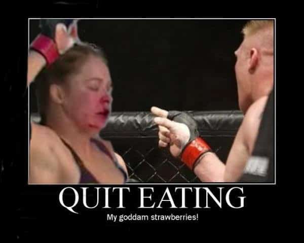 و قد سخر الجماهير من المقاتلة روندا روزى من خلال التشويه بتصريحاتها مثل ‘لا أحد يستحق أن يضربني “، وأيضا” يمكنني التغلب على الجميع بيد واحدة ” , كما شملت وسائل السخرية تشويه صورها بالفوتوشوب و نشرها على الشبكات الإجتماعية .